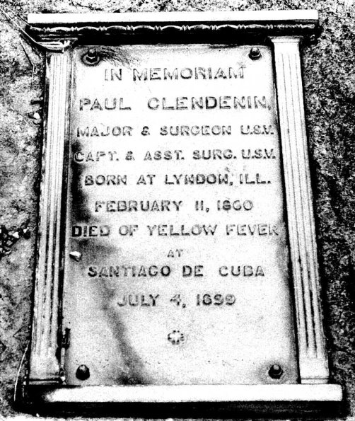 Paul Clendenin was born at Linden, IL, on 11 Feb 1868, the son of Gen. David Ramsay Clendenin. During his time in Washington he studied medicine at night and later joined the Army as a surgeon. His first wife, Susan Dunn Clendenin, died in 1884. They had two daughters, one of whom became the grandmother of Deedra Cook. The girls were raised by other family members. He married again in 1889. His second wife, Daisy Brownson Clendenin, died at Fort Bradley, Sault Ste. Marie, MI, on 28 Jun 1894. They had one daughter, Dorothea. Paul reportedly married a third wife. He died of yellow fever at Santiago, Cuba, on 4 July 1899. A military doctor with the rank of major, he was a part of the occupation forces after the Spanish American War.