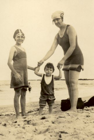 Johanna G Hemminga with children Jane and Harry at Miami Beach, 1925