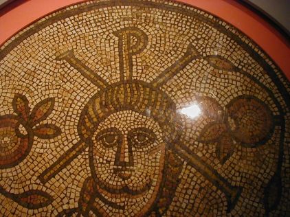 Floor mosaic from a Roman villa built before 400 in Dorset, England. Now in British Museum, London. While the craftsmanship is somewhat primitive (or provincial), that does not account for the round, chubby face or lack of beard.